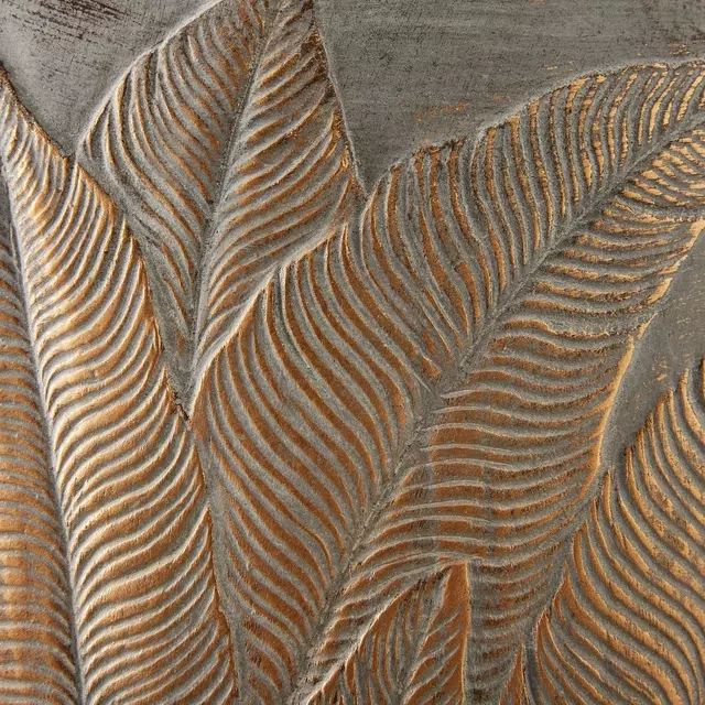 Intricate fronds and branches are exquisitely etched into the planter's surface, their detailed textures catching the light and creating subtle shadows that enhance their lifelike appearance.