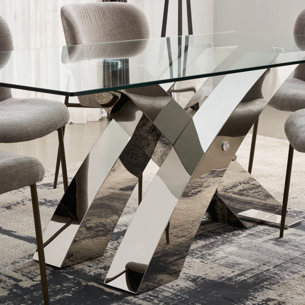 Marvel at the Adair's creatively designed frame; That highlights its elegant curves with a sleek chrome finish. This three-column frame is made of the finest stainless steel, meticulously assembled to create a modern work of art; that provides support to the stylish glass tabletop. With its great looks, plenty of space and durable materials; The Adair will be a centrepiece in your dining area for years to come. Pair the Adair with an ensemble of dining chairs for a truly stunning dining room spread.