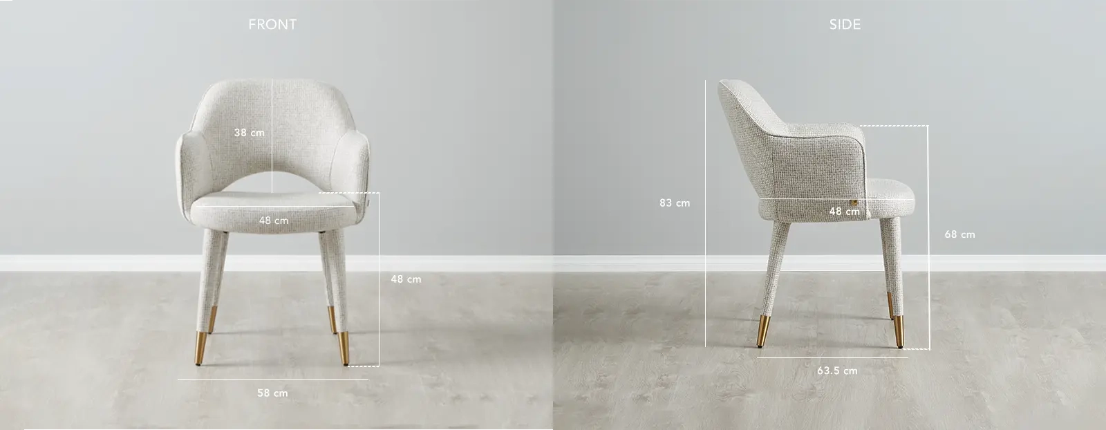 What sets the Adrianna apart is its stylish open back design, which enhances its visual appeal and introduces an element of modern sophistication to your dining setting. This thoughtful design choice creates a captivating focal point that's sure to leave a lasting impression. But it's the intricate details that truly make the Adrianna shine. The four legs, elegantly finished with golden tips, showcase the artistry and craftsmanship behind this chair, exuding an aura of luxury and refinement that elevates your dining experience to new heights.