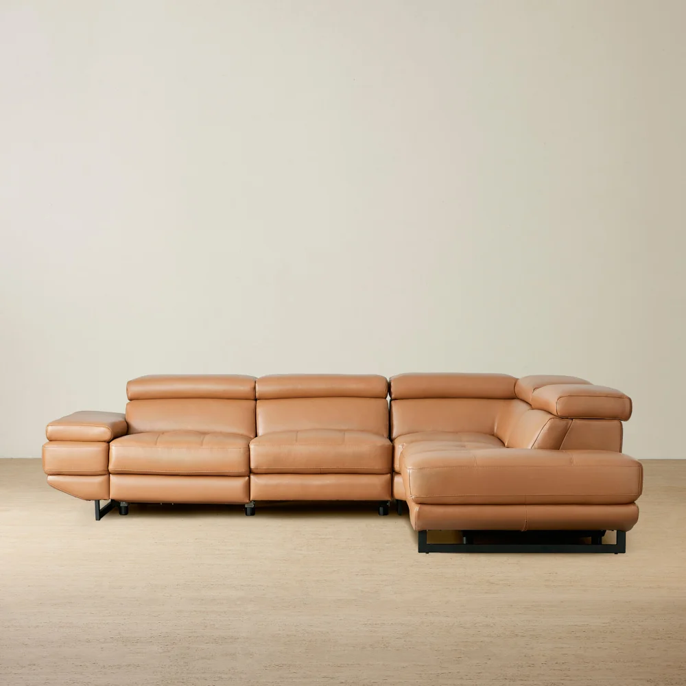 Adorned in genuine Savanna Brown coloured leather, the Alessia offers adjustable headrests and reclining footrests for a personalized lounging experience. Immerse yourself in its embrace and let the layers of dense foam envelop you in unparalleled comfort.