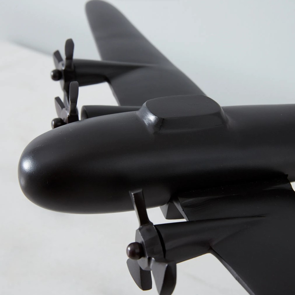 The smooth, almost seamless construction of this piece allows it to effortlessly harmonize with various decor styles. Without excessive detailing, the sculpture focuses on the iconic silhouette of a plane, instantly recognizable and universally appreciated. The black bronze finish lends a sophisticated and contemporary edge, making the piece versatile and easy to integrate into your home or office.