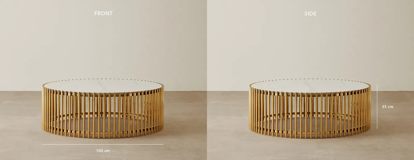 The Amaya Coffee Table embodies elegance with its circular white sintered stone top, poised for stylish centerpieces or your morning coffee ritual.