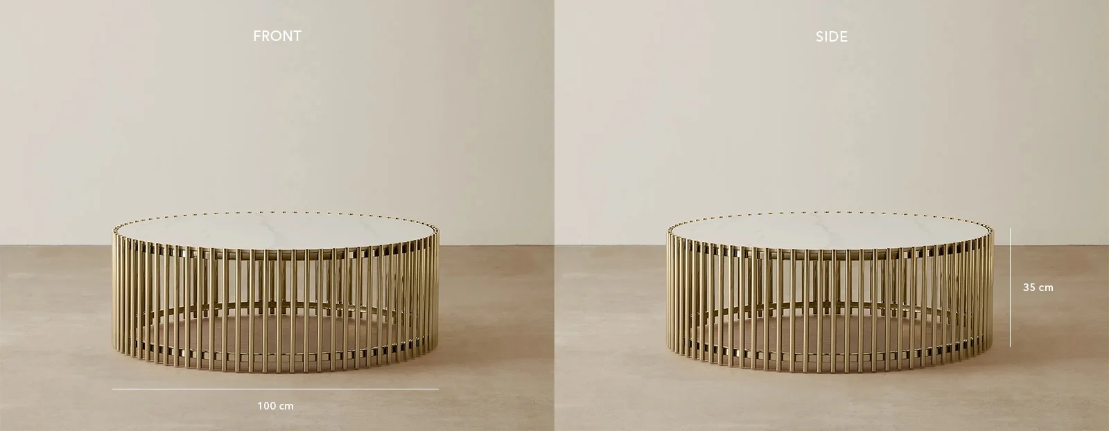 The Amaya Coffee Table embodies elegance with its circular white sintered stone top, poised for stylish centerpieces or your morning coffee ritual.