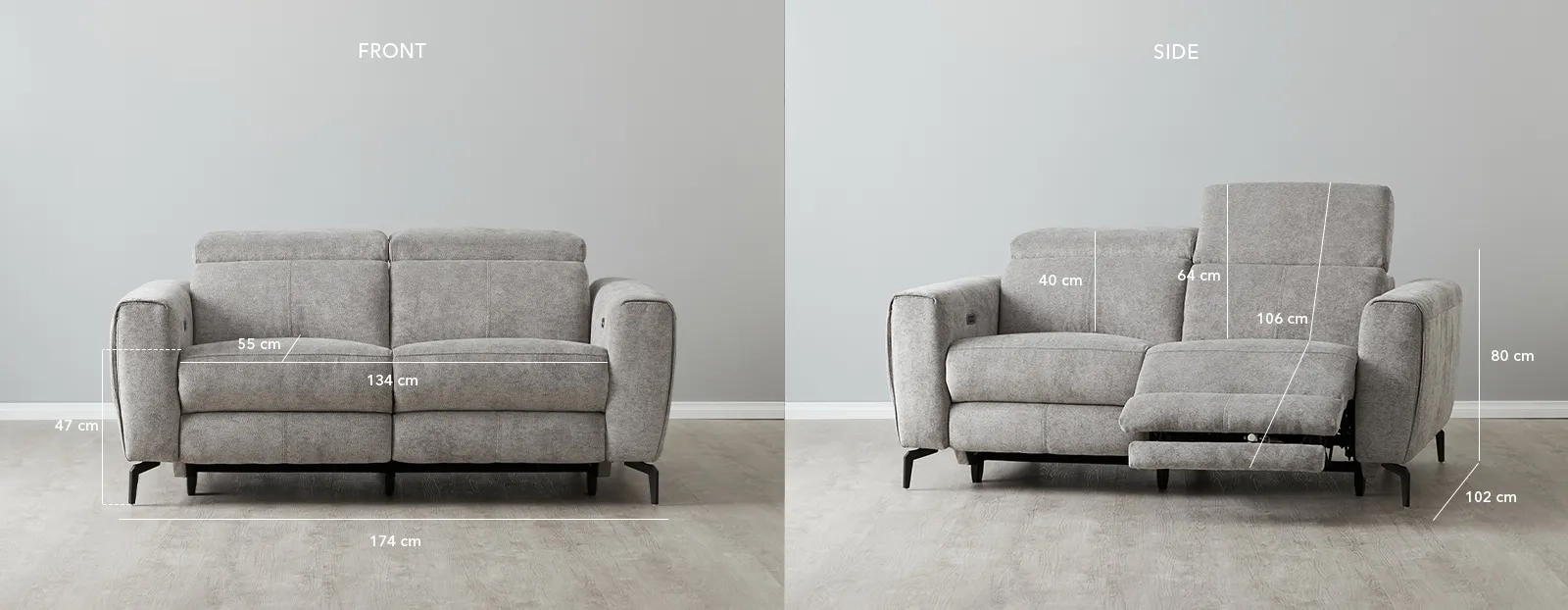 Experience modern comfort with the Ambrose II 2-Seater Recliner. Draped in woven fabric with a contemporary grey-coloured hue, it is plush with dense foam for comfort.