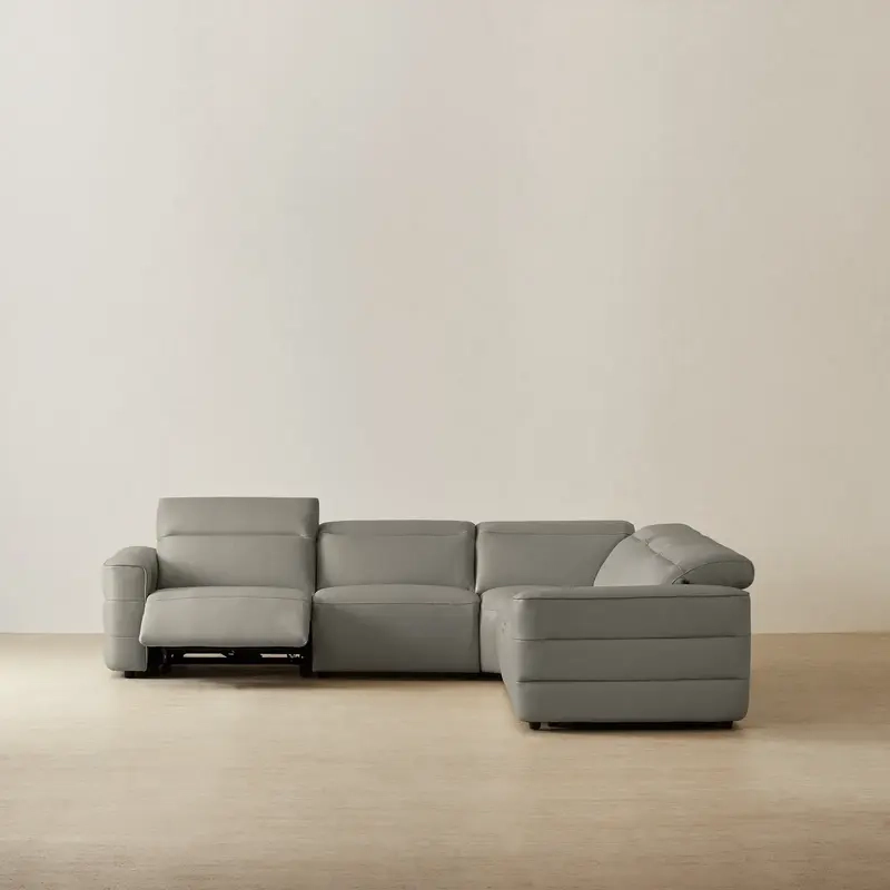 Equipped with dual electric recliners, this modular sofa provides personalised comfort at the touch of a button. The thoughtful design combines modern style with practical functionality, ensuring effortless relaxation.