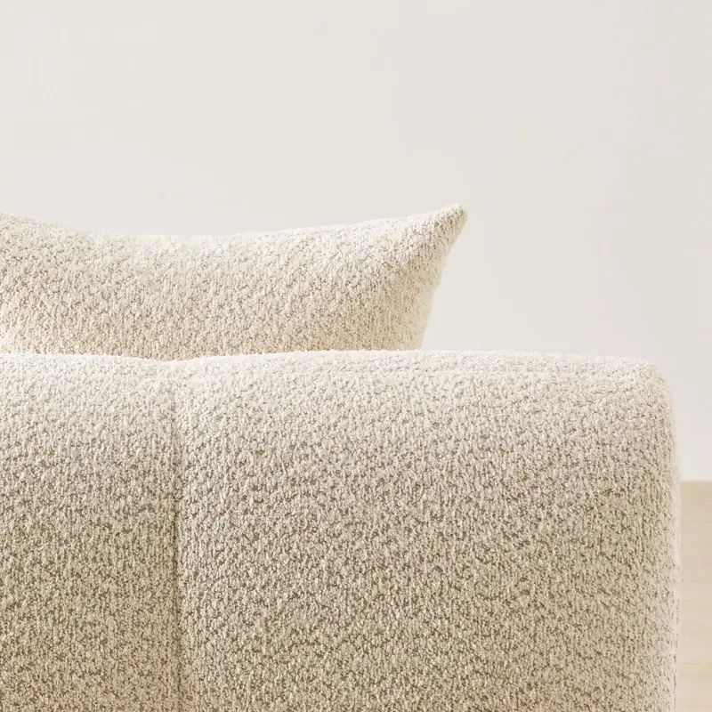 Wrapped in the same soft stone-cream woven fabric as the full Amity Sofa, this armless piece brings gentle warmth and a relaxed tactile feel.