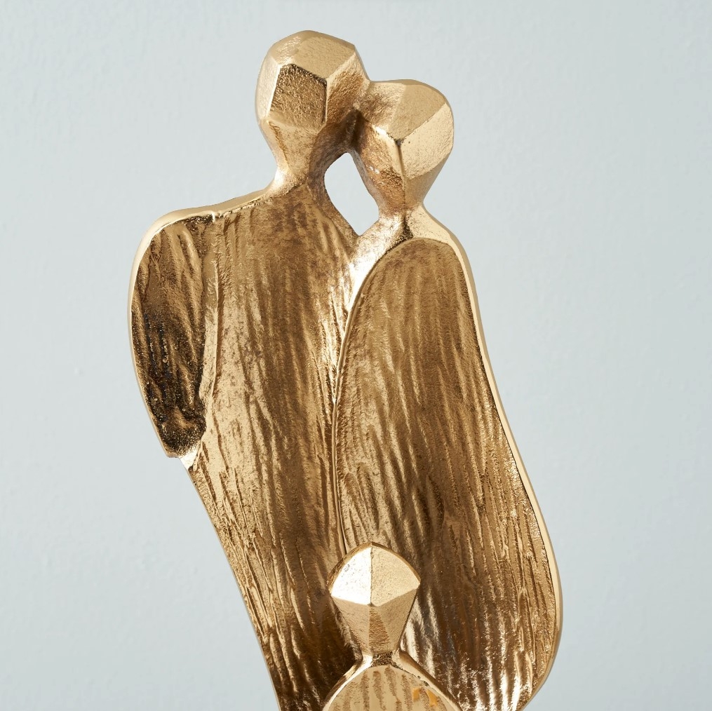 Each silhouette, distinct yet harmonious with the others, represents individual family members, and together they form a whole that is much greater than the sum of its parts. The name "Amor" is deeply fitting, as it translates to the god of love — a testament to the profound affection that this piece aims to evoke. With its golden luster, this sculpture radiates a warm and inviting glow.