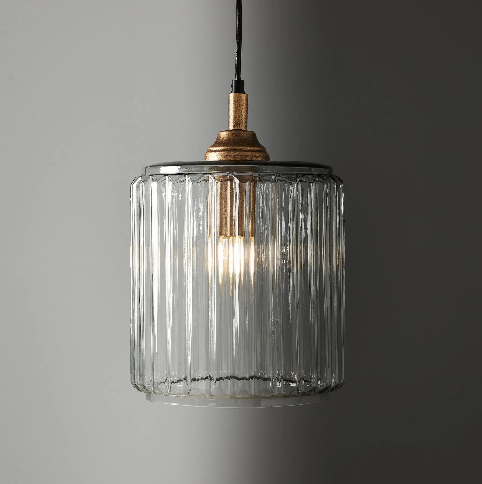 The heart of this pendant light is its clear, thick glass shade, designed in an upside-down silhouette. Its design is reminiscent of age-old lanterns, carrying forward a timeless charm into contemporary interiors. Elevating its elegance is the golden-coloured socket, a touch of opulence that encapsulates the bulb. The gold not only offers a radiant contrast to the clear glass but also infuses the overall design with a rich and luxurious ambiance.