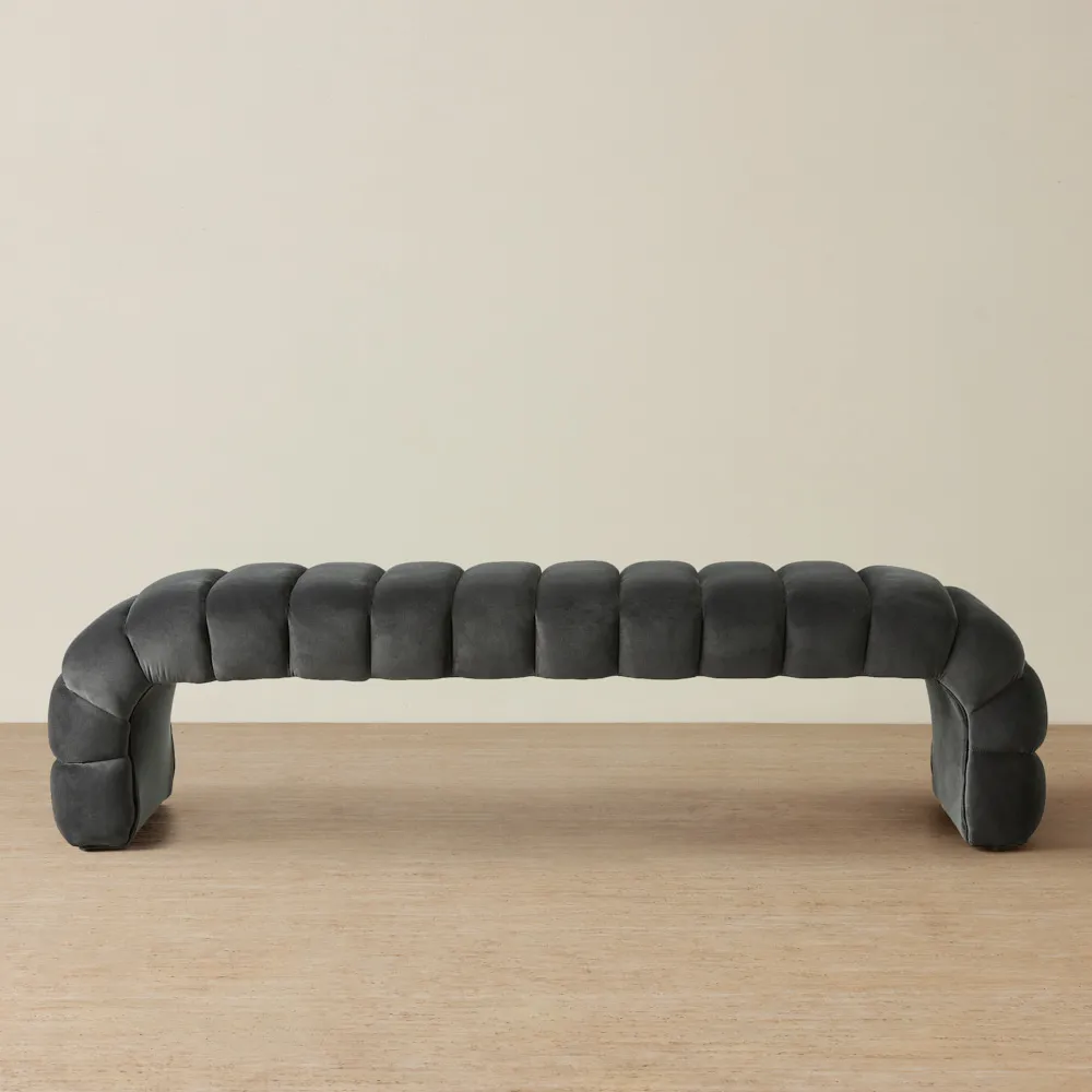 Clad in premium velvet, it exudes an air of sophistication in its subdued shade of beige, perfectly balancing elegance with warmth. The prominent tufting, spreading generously across its surface, not only adds a tactile allure but beckons with an invitation to comfort. Beneath this textured exterior lies plush padding, ensuring that the Annika isn't just a feast for the eyes, but a haven of comfort to rest on. Pair this majestic piece with one of our velvet sofas for a stunning spread.