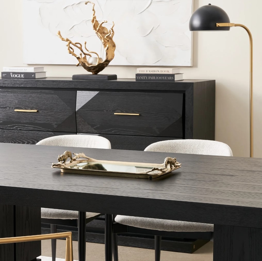 Present your appetizers, desserts, or drinks with a touch of elegance using the Antique Floral Tray. This beautifully crafted piece is more than a simple serving tray; it is a statement of style and grace that enhances any gathering. Masterfully shaped in a rectangular form, the tray features a stunning mirrored panel as its centerpiece.