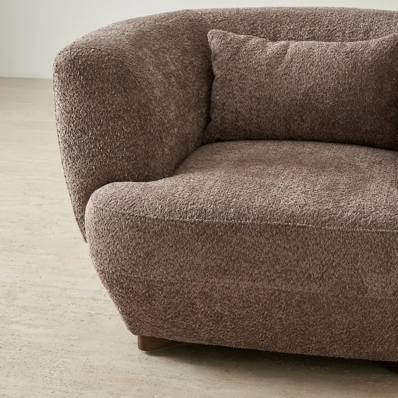 The Antonella Occasional Chair features a gracefully curved silhouette that gently encases you in its comfort. Upholstered in a rich, warm taupe woven fabric, it offers a cozy and luxurious seating experience that invites relaxation.