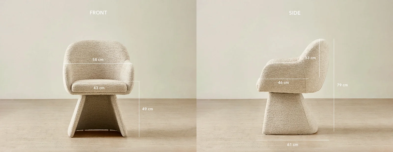 The Antonia Dining Chair in Dusty Beige brings modern comfort and form to the dining space. Its smooth, rounded silhouette flows into gently curved arms.