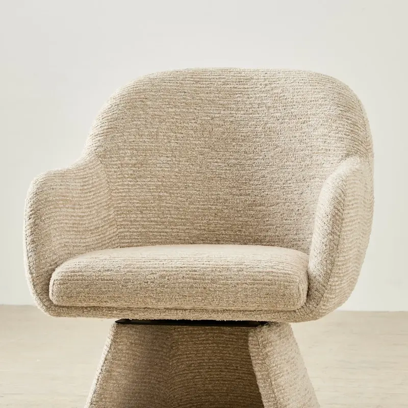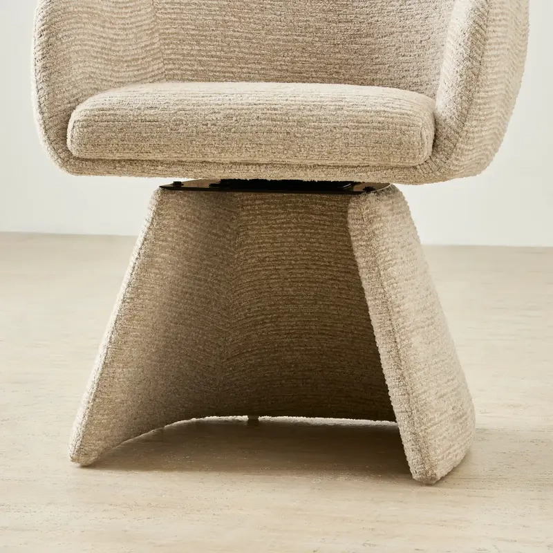 Its unique swivel base offers both function and flair. Supported by a wide, flared pedestal design, it stands out as a statement piece.