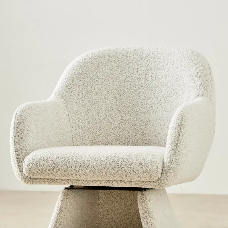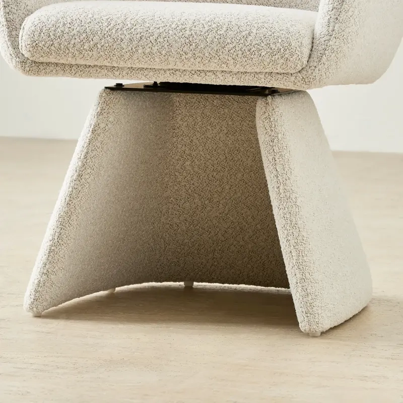 Its unique swivel base offers both function and flair. Supported by a wide, flared pedestal design, it stands out as a statement piece.