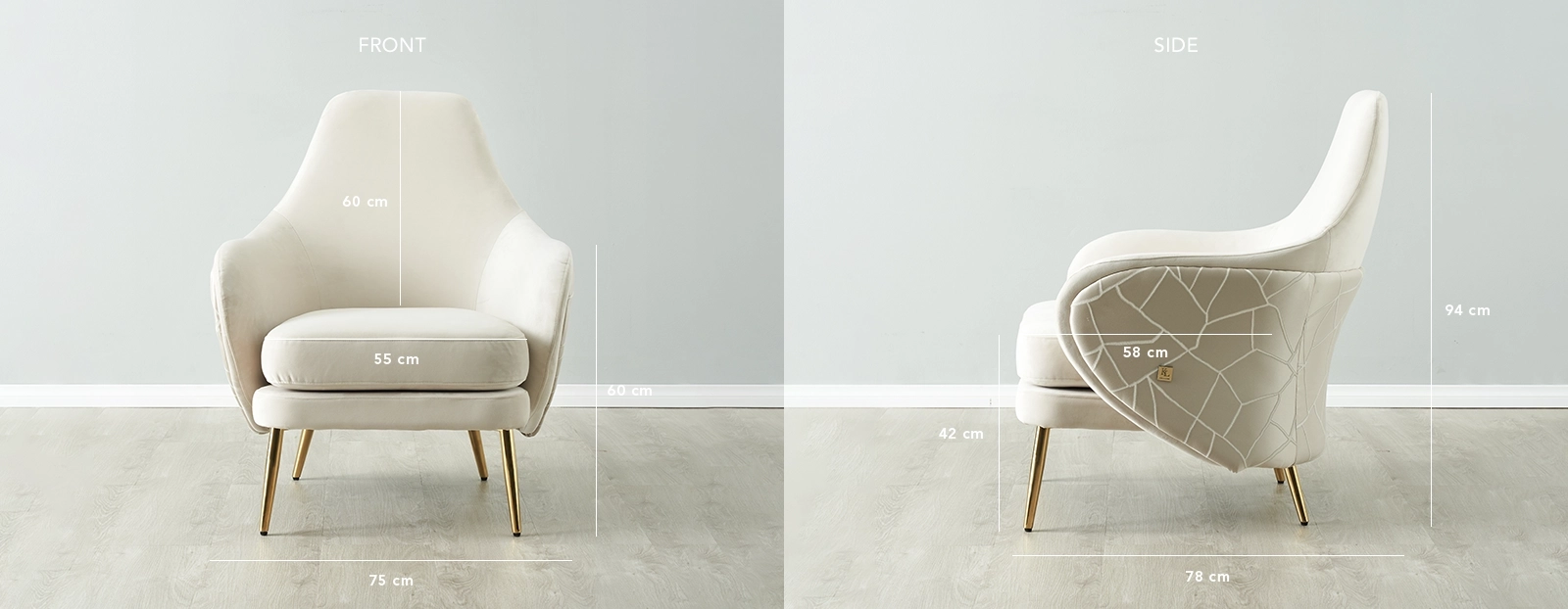The Anya Cream Velvet with Back Pattern Occasional Chair combines art-deco style with contemporary luxury. Draped in cream-colored velvet, it offers softness and soothing colors on a beautifully designed frame.