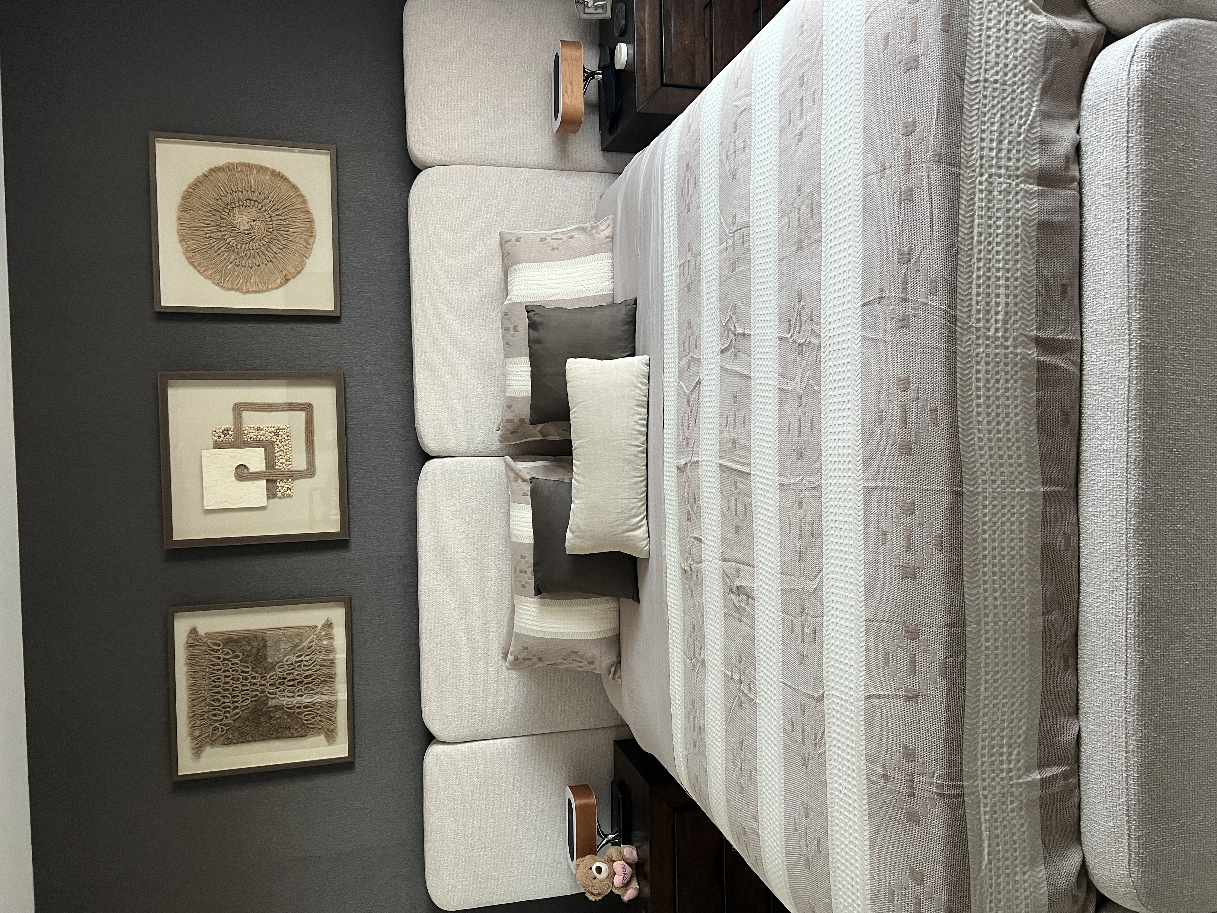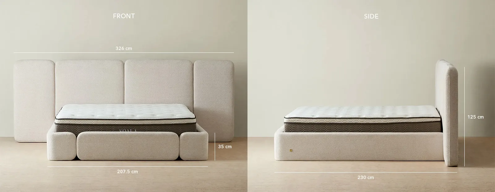 The Arcadia King Bed offers a striking geometric design, characterised by its clean, square-shaped form. The oversized headboard creates a bold statement, providing both style and comfort.