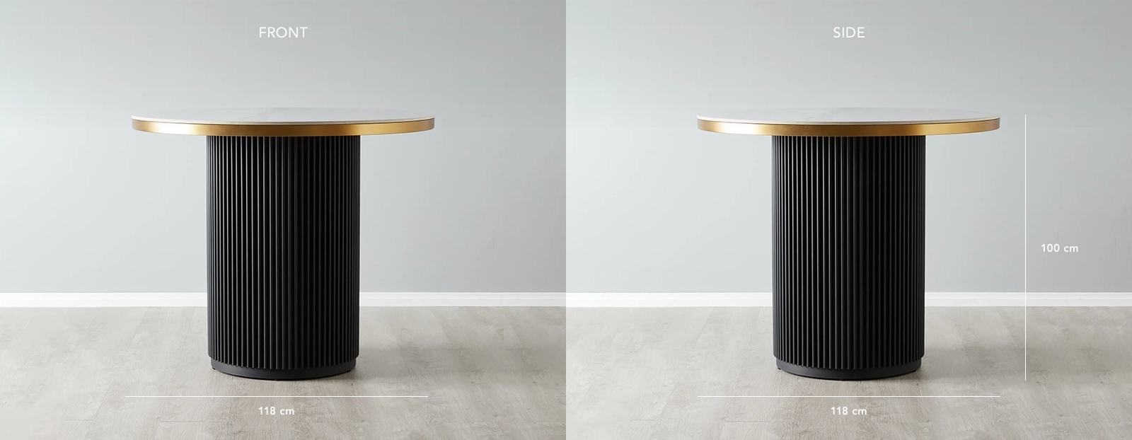 A single, statuesque column supports this lavish tabletop, a testament to both form and function. The vertical reeding that adorns the column is not just a structural necessity but an artistic statement, harmonizing strength with sophistication. Bathed in a palette of monochromatic hues, the Archie exudes an understated opulence, making it the perfect centerpiece for any modern setting. Complete the ensemble with a curated selection of our Bar Chairs to craft a dining space that's both chic and inviting.