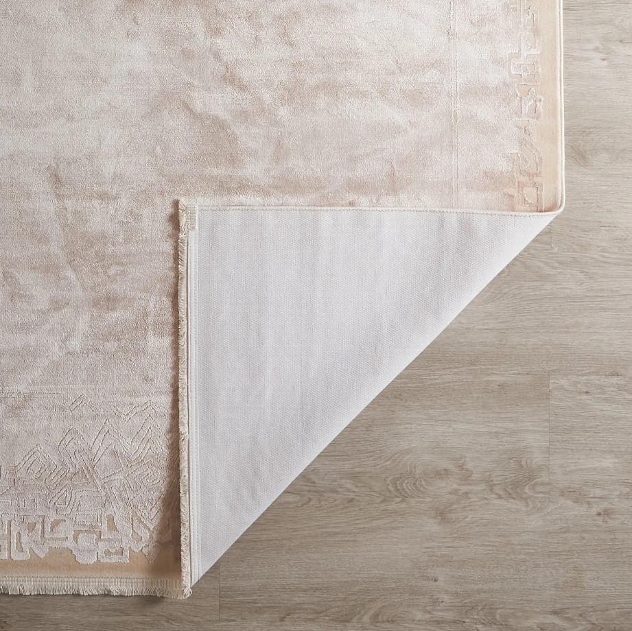 Prepare to step onto the Ariana Floor Rug, a masterpiece underfoot that marries neutral tones with a captivating design. This rug is a testament to artisanal skill, each thread meticulously woven to depict the ethereal beauty of sand swept across ancient glyphs. The design is subtle yet intricate, with faint lines and carefully crafted borders that suggest a storied past carved by time.