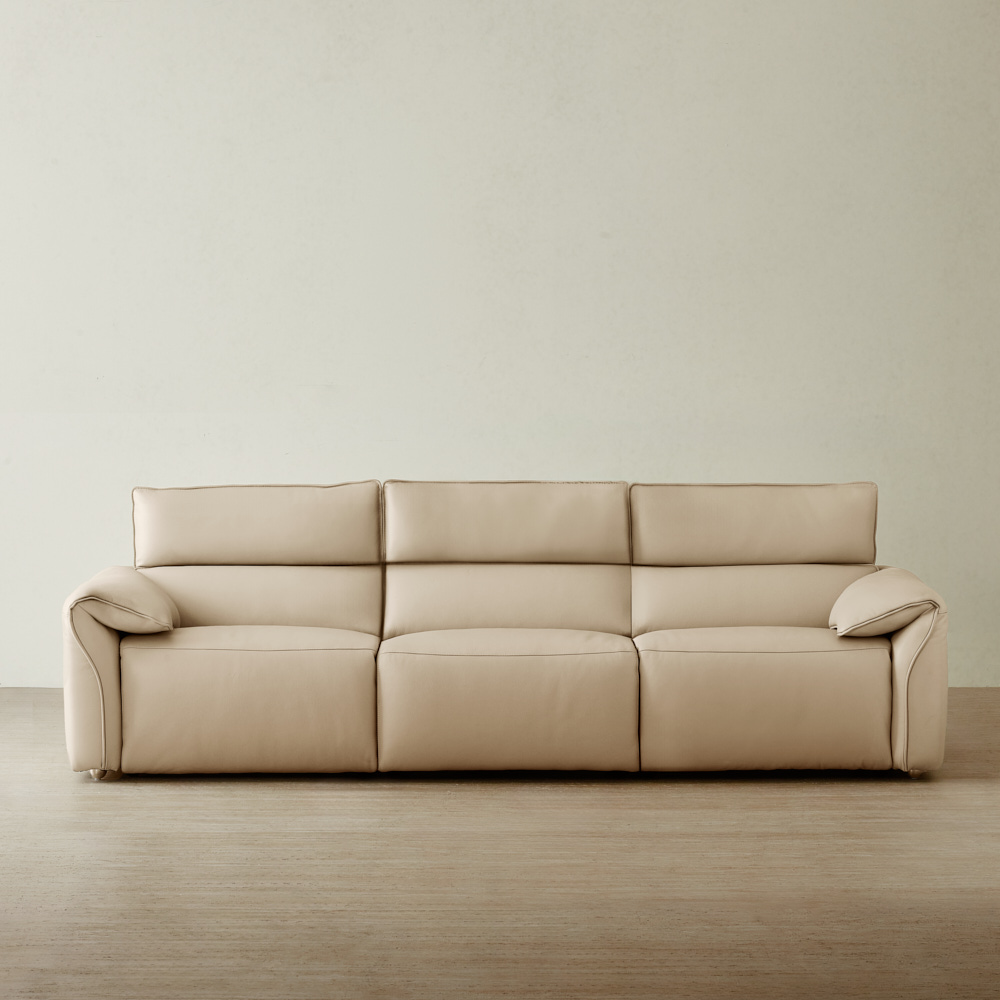 Sleek, supportive, and luxuriously comfortable, the Arlington Recliner redefines how you unwind. Upholstered in premium almond cream leather, this 2-piece modular design features dual electric recliners for personalized comfort at the touch of a button.