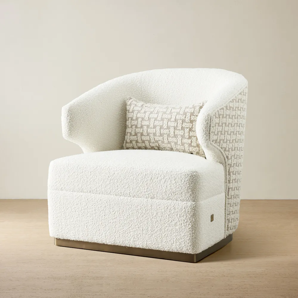 Draped in the finest boucle fabric, renowned for its exquisite texture and unparalleled softness, the Arlo Cushion envelops you in a gentle embrace, providing a true sense of comfort and relaxation. The sophisticated cream-coloured shade of the boucle fabric adds an air of elegance and timeless beauty to any room. What truly sets the Arlo Cushion apart is its striking chain-like motif that adorns its surface. This distinctive design element adds an edgy and contemporary touch to the overall aesthetic, making it a true statement piece that captures the imagination and sparks conversation.