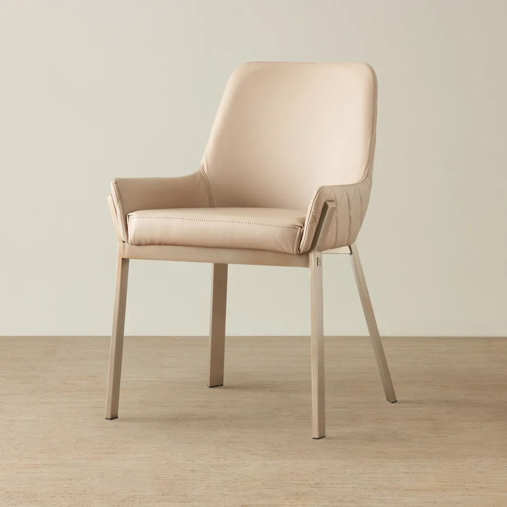 Immerse yourself in the harmonious fusion of contemporary grace and timeless allure with the Arya II Beige Velvet Dining Chair. The Arya Dining Chair is enrobed in sumptuous beige velvet, offering a luxuriously soft touch that invites guests to linger longer at the table. The velvet upholstery not only adds a layer of tactile richness but also enriches the chair's visual appeal, giving it a plush, inviting look that complements any dining setting.