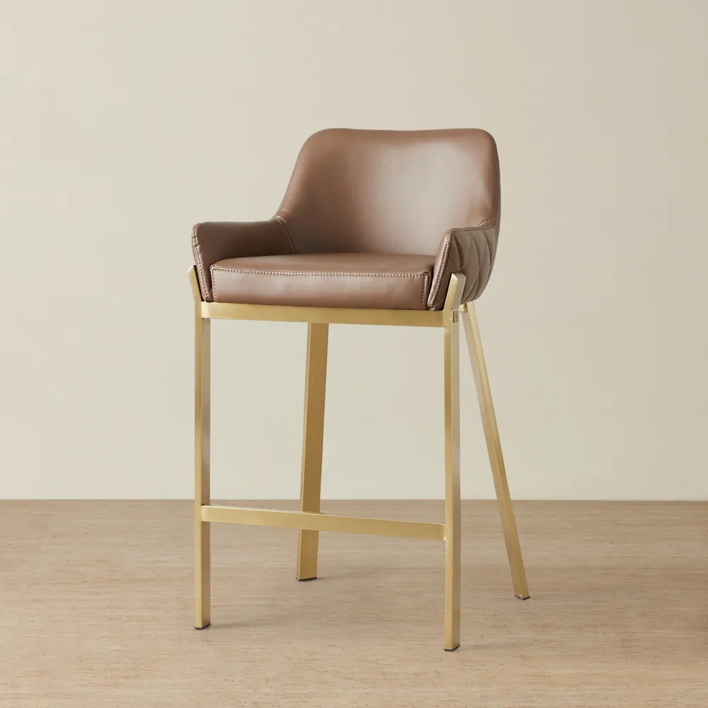 The velvet, in its sophisticated charcoal shade, emits an inviting allure, becoming a compelling centerpiece in your space. The rich velvet seat finds its perfect partner in a sleek steel frame, bathed in a radiant gold finish. The elegant interplay between the dark, luxurious velvet and the gleaming gold frame creates a dynamic contrast, lending depth and character to the overall design. The Arya Counter Stool, undoubtedly, stands as an unmissable statement piece.
