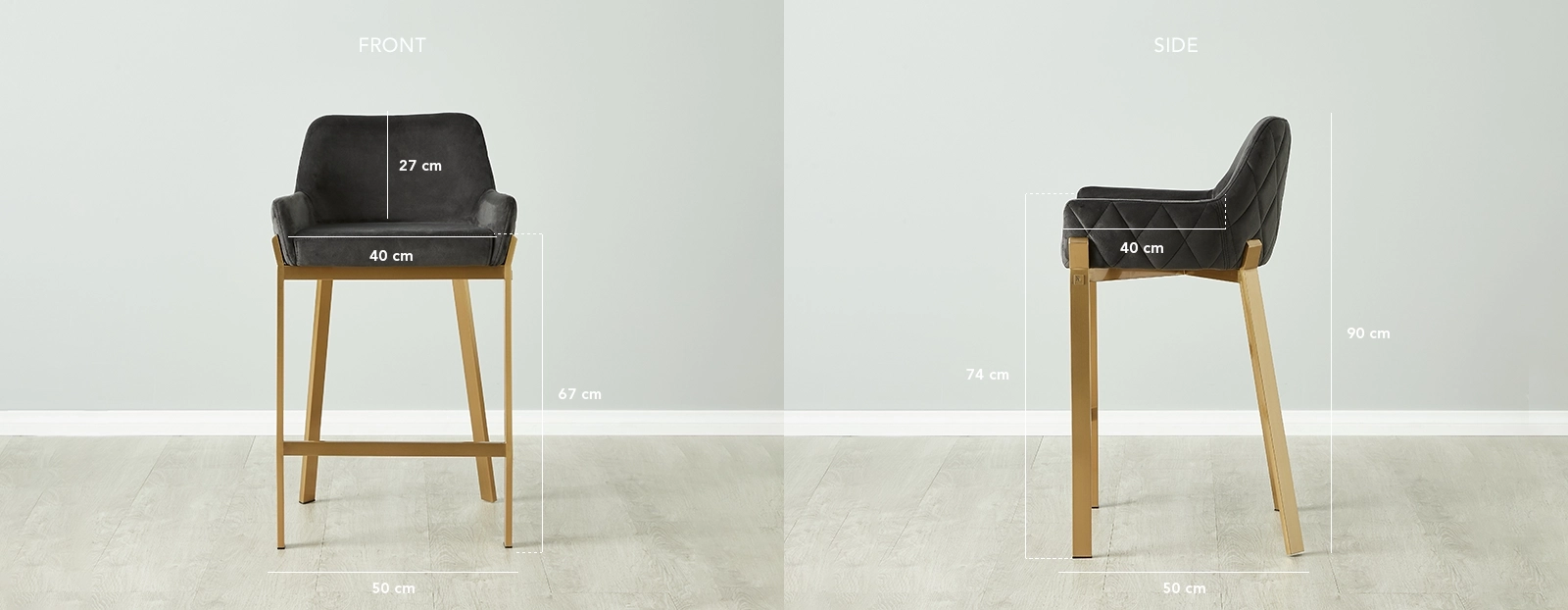 Delighted - once again - with the quality, design, materials and service regarding my purchase of 2 counter stools. The stools are particularly prominent as our kitchen island is part of an open plan Living-Dining-Kitchen space. It is very important that they complement the overall design scheme. We already have a Vogue velvet sofa. The counter stools are exactly as described - vindicating my online choice!