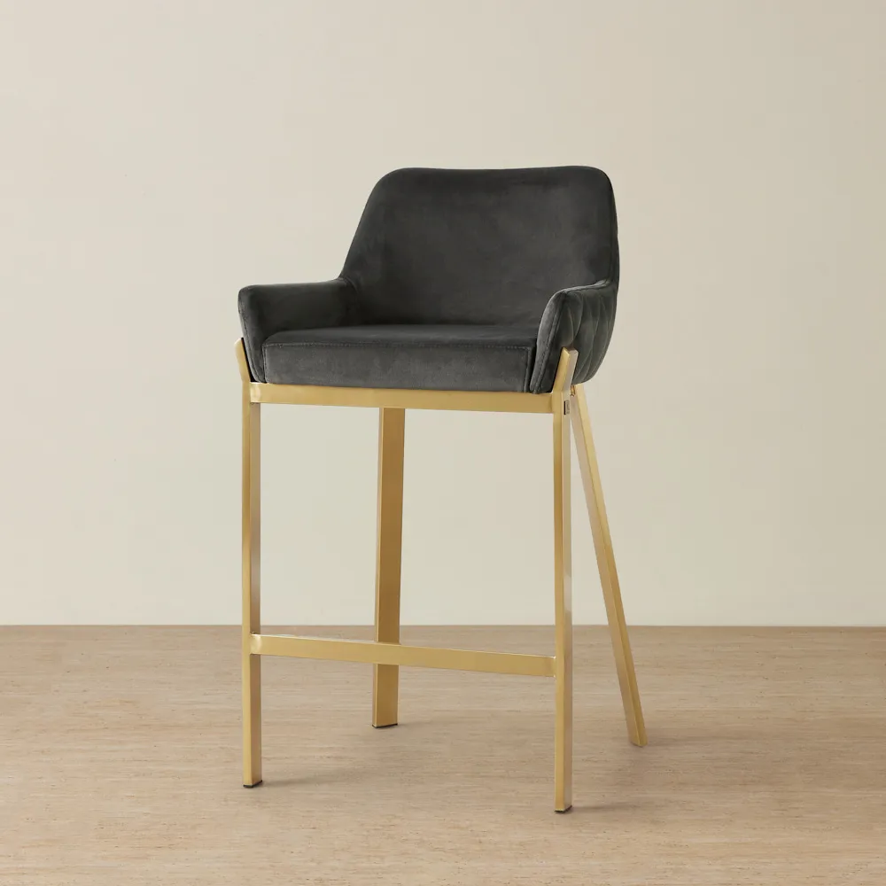 Its comfortable seat is meticulously upholstered in high-quality velvet fabric, showcasing its soft texture and adding a touch of opulence. The luxurious Charcoal colour of the seat creates a stunning and inviting atmosphere. Complementing its rich hues is its stylish frame, finished in Brushed Golden colours, providing depth and character to the overall design. Pair the Arya with one of our majestic dining tables for a truly stunning combination.