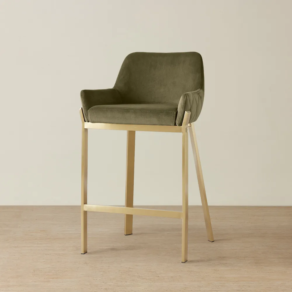 Its comfortable seat is meticulously upholstered in high-quality Velvet Fabric, showcasing its soft texture and adding a touch of opulence. The Sophisticated Olive Green colour of the seat creates a captivating and inviting atmosphere. Complementing its rich hues is its stylish frame, finished in Brushed Golden colours, providing depth and character to the overall design. Pair the Arya with one of our majestic dining tables for a truly stunning combination.