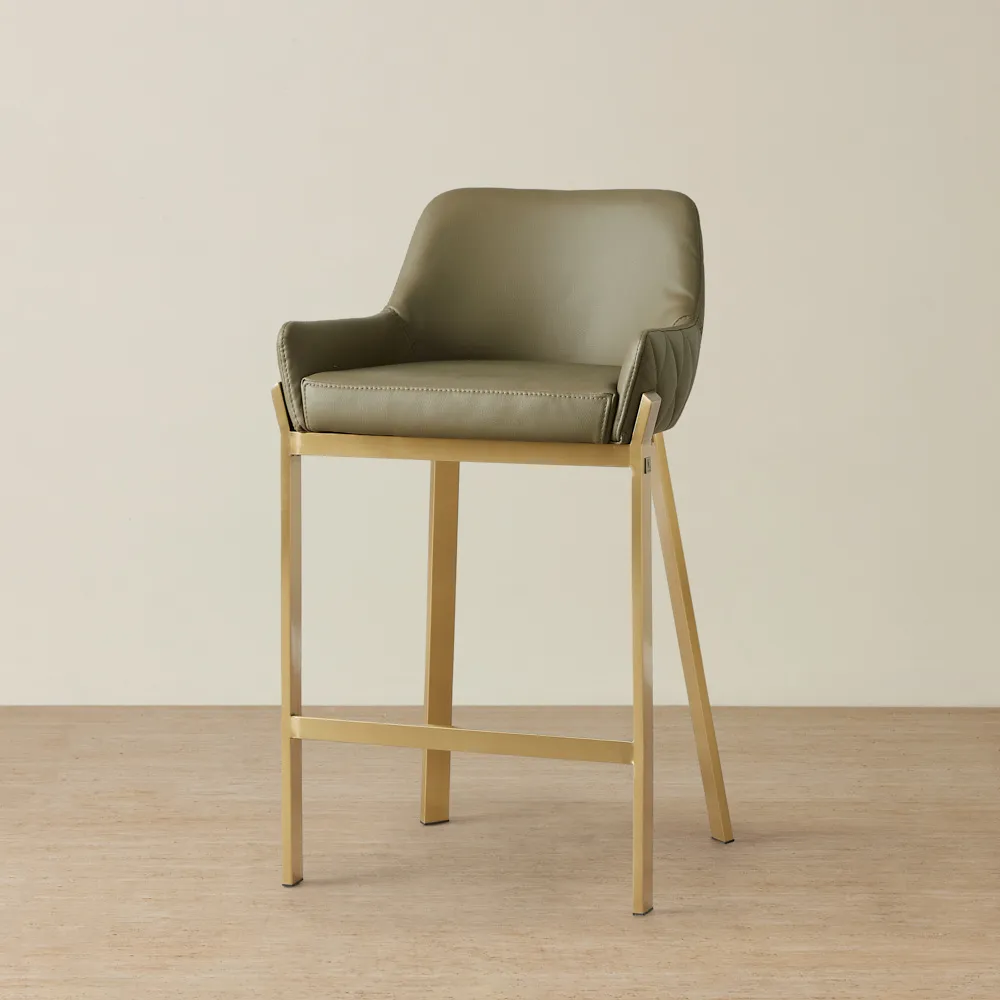 Its comfortable seat is meticulously upholstered in high-quality Vegan Leather, showcasing its rich texture and adding a touch of opulence. The Sophisticated Sage Green colour of the seat creates a stunning and inviting atmosphere. Complementing its rich hues is its stylish frame, finished in Brushed Golden colours, providing depth and character to the overall design. Pair the Arya with one of our majestic dining tables for a truly stunning combination.
