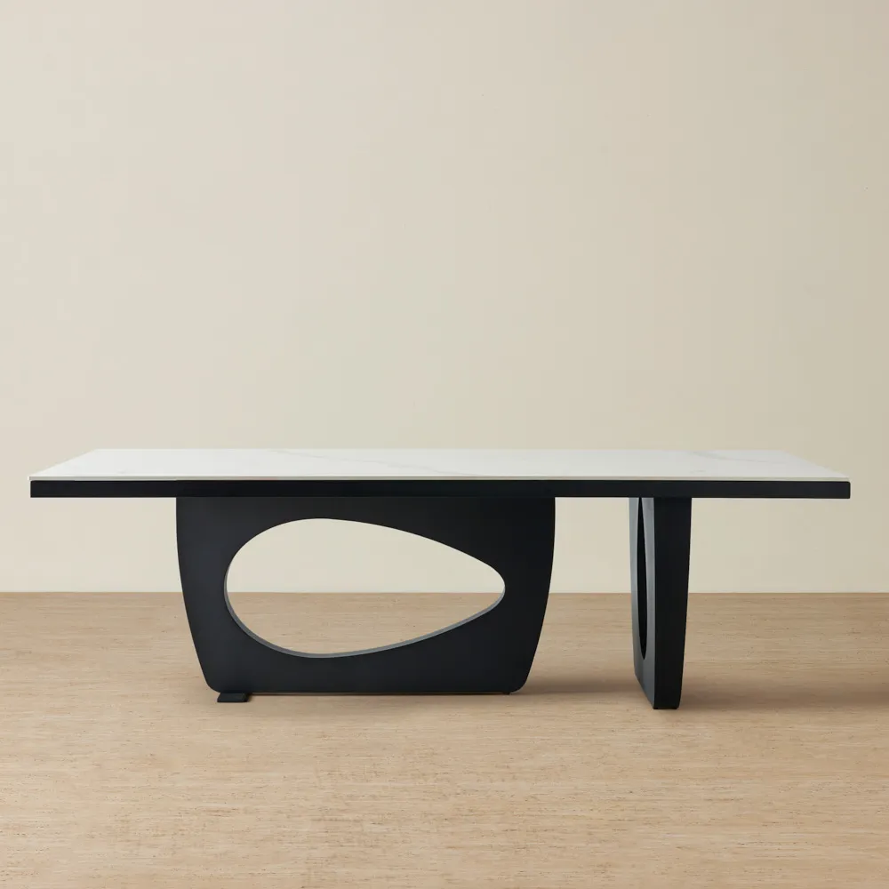 Providing support and visual interest to the Aspen are its masterfully crafted metal frames that shine in brushed gold colours. At the centre of each frame are artistically designed egg-shaped hollows that further accentuate its modish appeal. Gather your friends and have bountiful celebrations as the Aspen comfortably sits up to 6-8 people. The Aspen Sintered Stone Dining Table is best paired with an ensemble of our Dining Chairs for a truly stylish spread.
