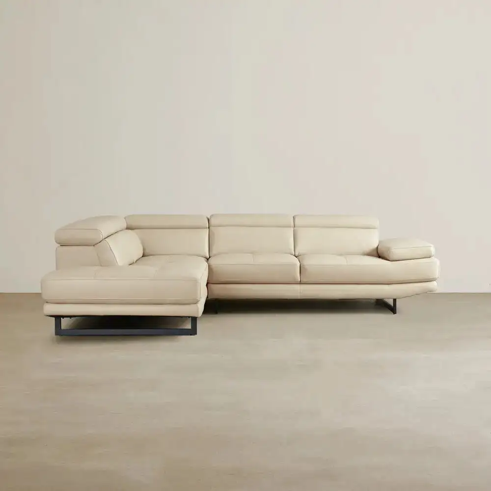 The Aster Chaise Lounge blends modern elegance with luxury, offering flexibility. Wrapped in luxurious Almond Cream Leather, its modular design allows for effortless adjustments and versatile configurations.