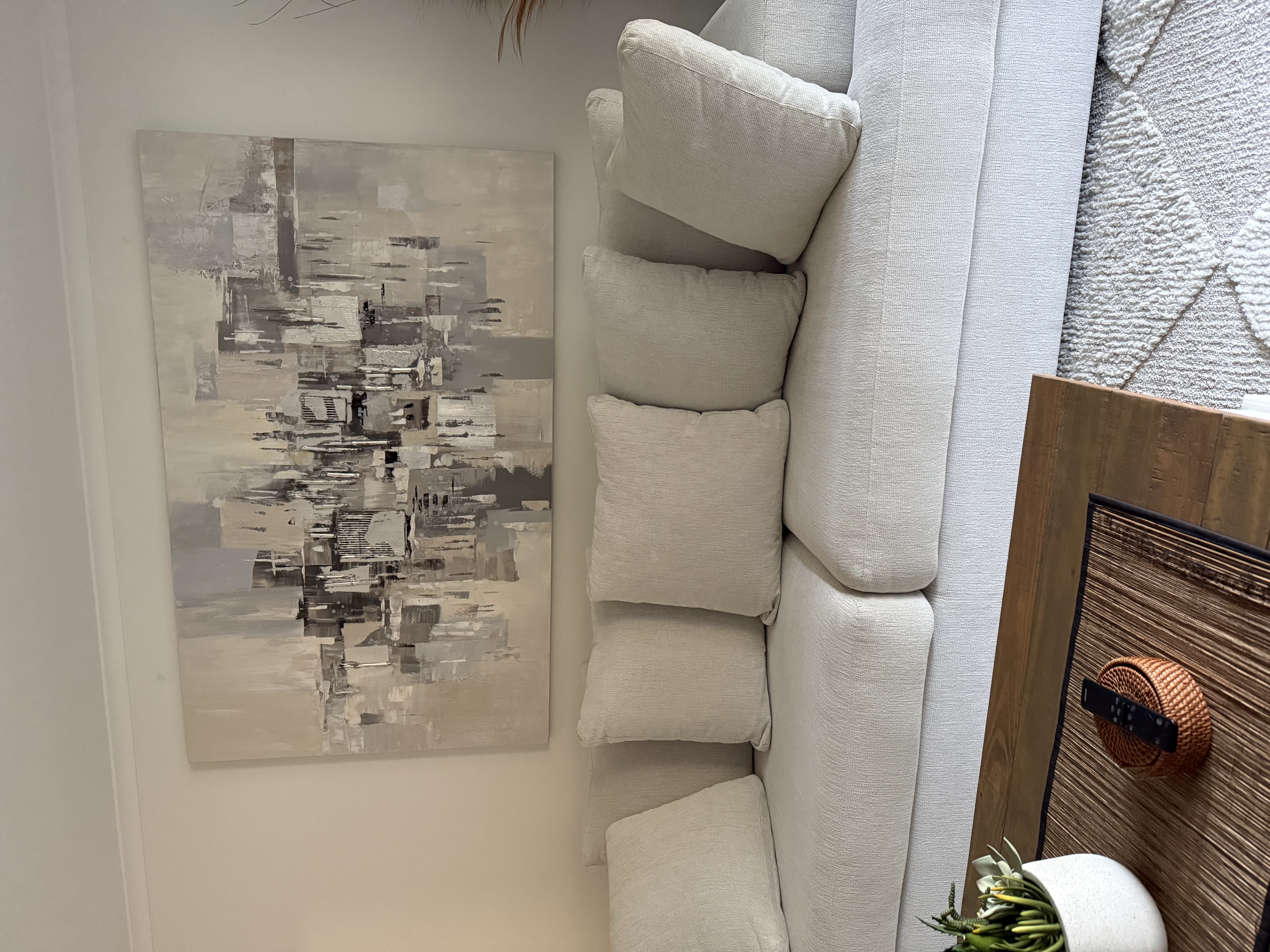The August Abstract Painting is an embodiment of muted elegance, making it a sublime addition to any home space. It boasts a sophisticated palette that marries dark and neutral tones, suggesting both depth and subtlety in its composition.