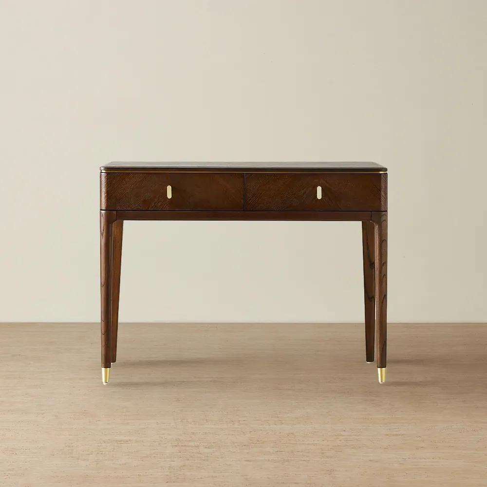 The Beckham Bedside Table's charm is accentuated by the rich brown hue, lending an earthy warmth to your bedroom. The visible grain and markings of the wood enhance its rustic appeal, each one telling a story of nature's unrefined beauty. These distinctive features infuse your space with an aura of comfort and authenticity.