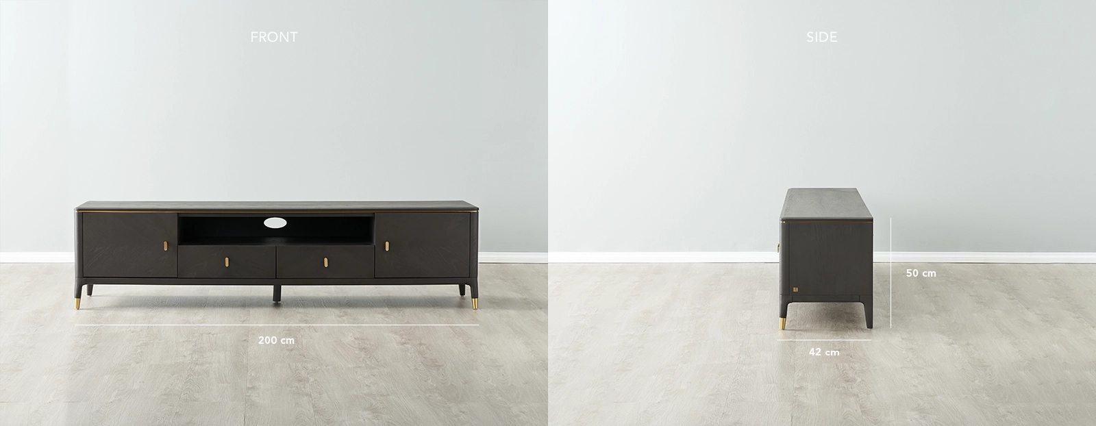 A media player or console will certainly fit the Beckham's open shelve with a helpful wire hole for cable management. This open shelf is flanked by cabinets and drawers to house CDs, Vinyl Records and more. Five different legs with their own unique designs provide support and stability to the piece. Pair the Beckham with one of our impressive wall art along with a gorgeous floor rug.