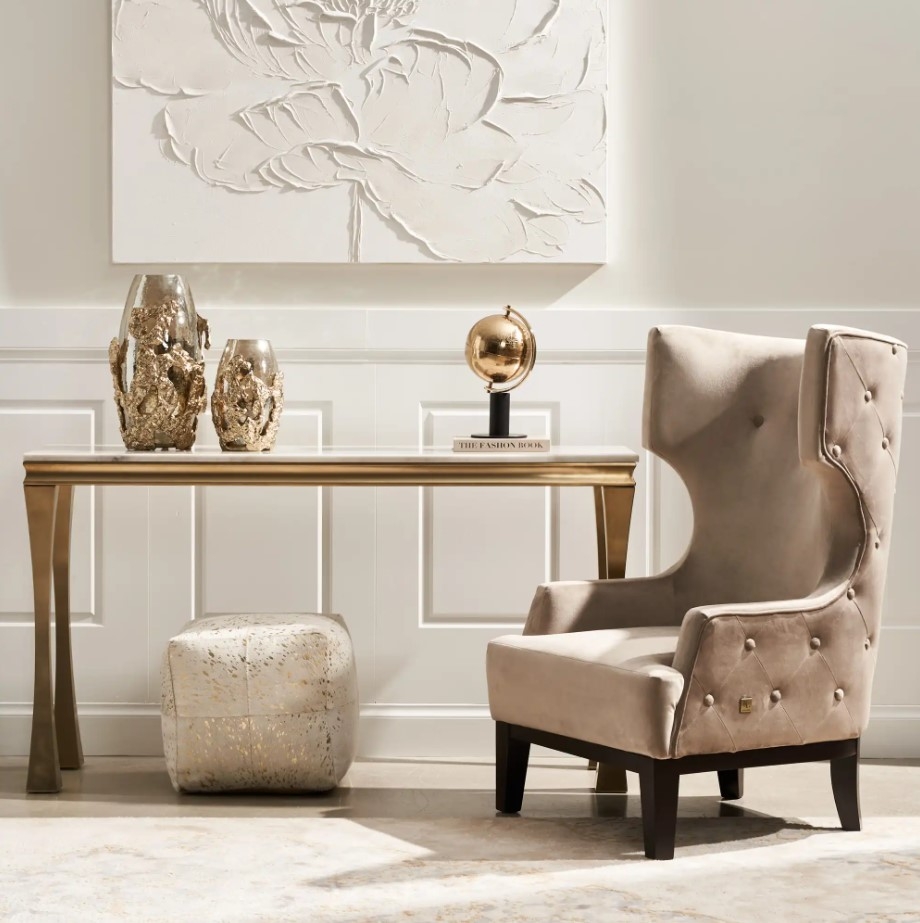 The Berdine Occasional Chair elevates the simple armchair with its high-back design and elegant curves. Covered in soft colours, it combines style and comfort effortlessly.