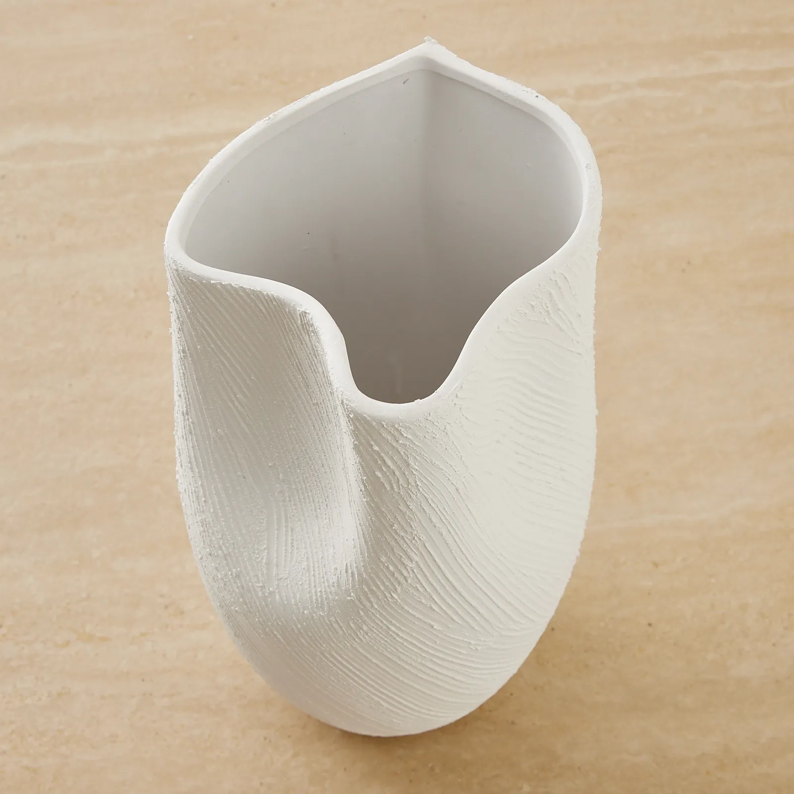 The Blythe Vase features an organic, fluid shape with an open, curving top.
