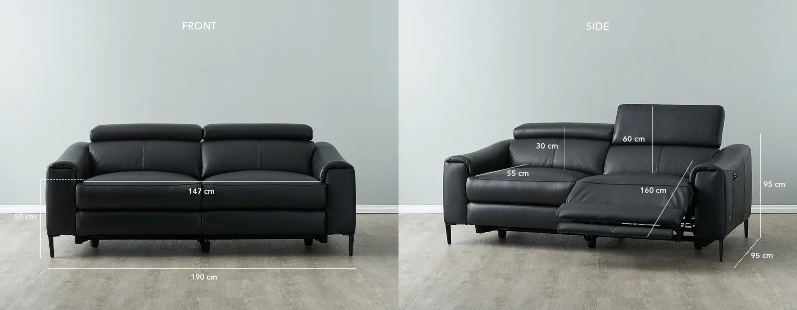 Enhance your space with the luxe modernity of the Bruce 3-Seater Electric Recliner. Draped in genuine black leather and filled with high-density foam, it exudes both elegance and ultimate comfort.