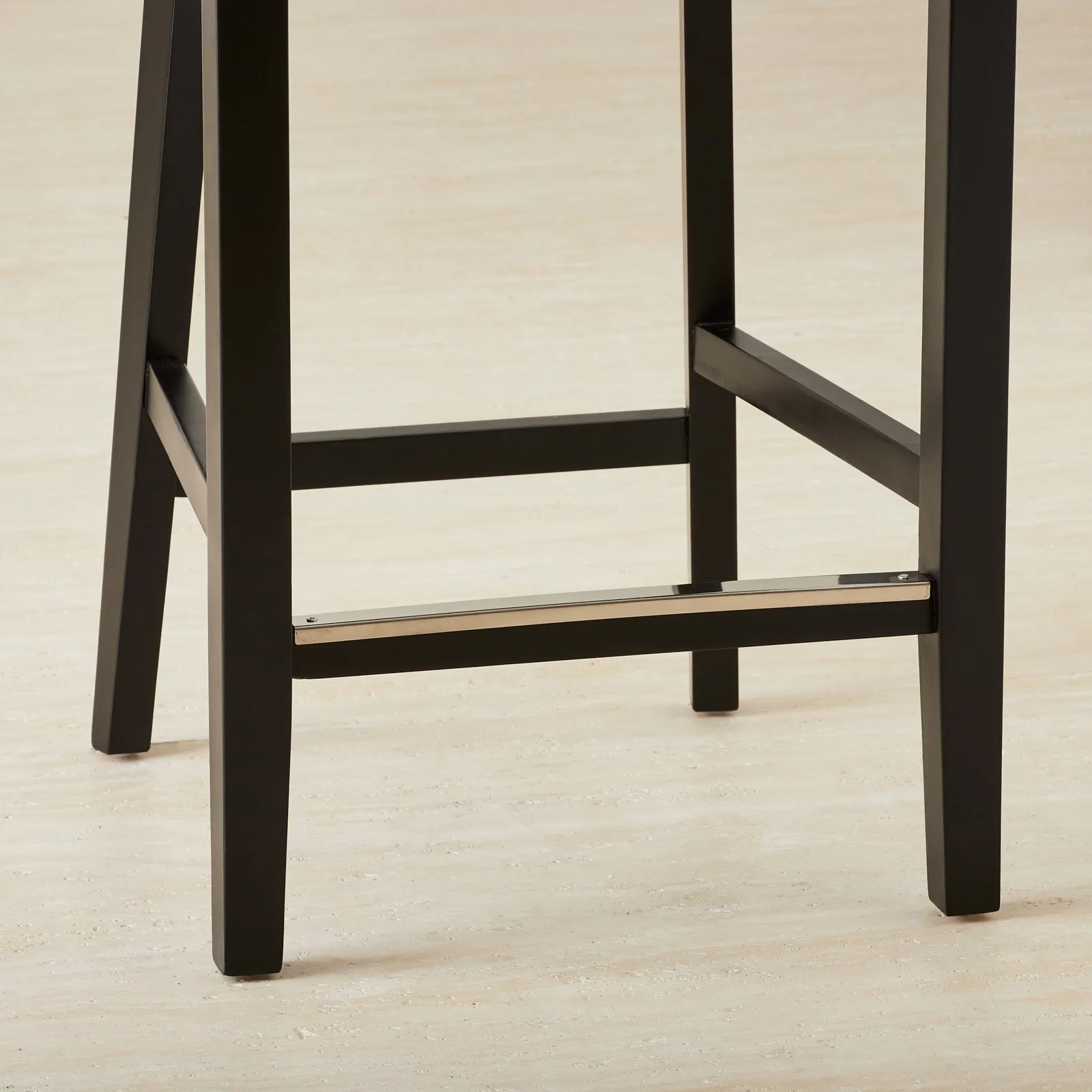 The stool’s four interconnected wooden legs ensure stability while adding a graceful touch, and the mirrored footrest offers a subtle hint of glamour. This elegant piece elevates your bar space, combining luxury with timeless style.