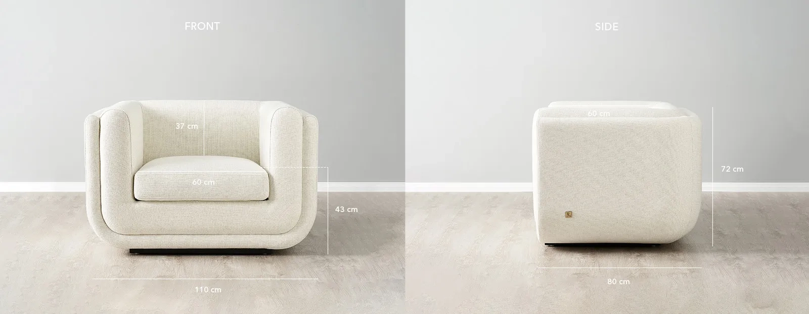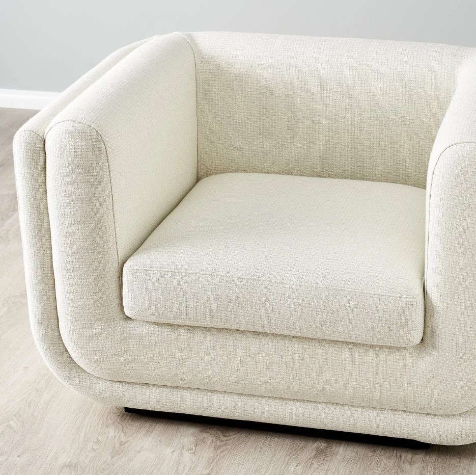Upholstered in Chestnut White Woven fabric, the three-layered cushioning offers both visual appeal and luxurious comfort, inviting you to sink into its soft embrace from any angle.