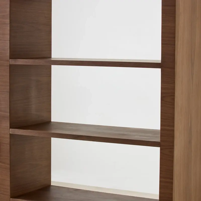 Crafted in a rich mocha walnut finish, this piece adds natural warmth to any space. Open shelves offer practical display and storage, making it as functional as it is visually striking.