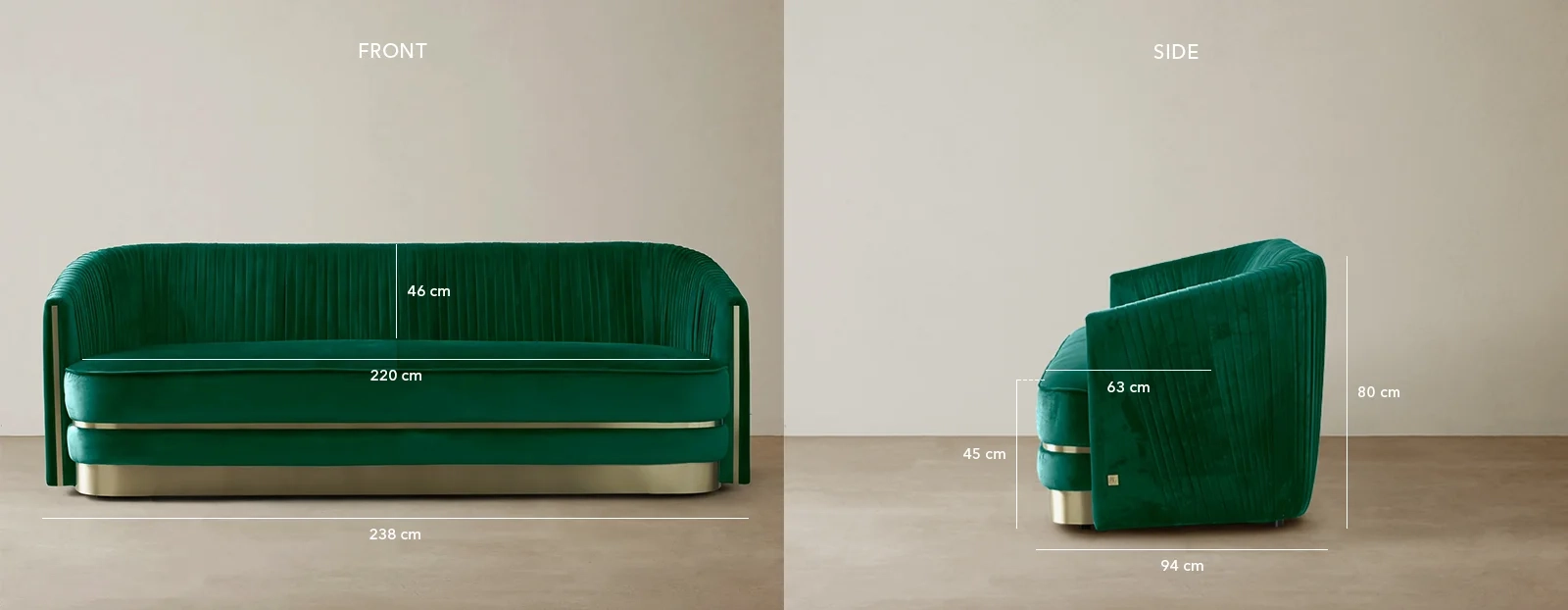 Crown Emerald Green Velvet 3-Seater Sofa - Champagne Gold Stainless Steel Legs
