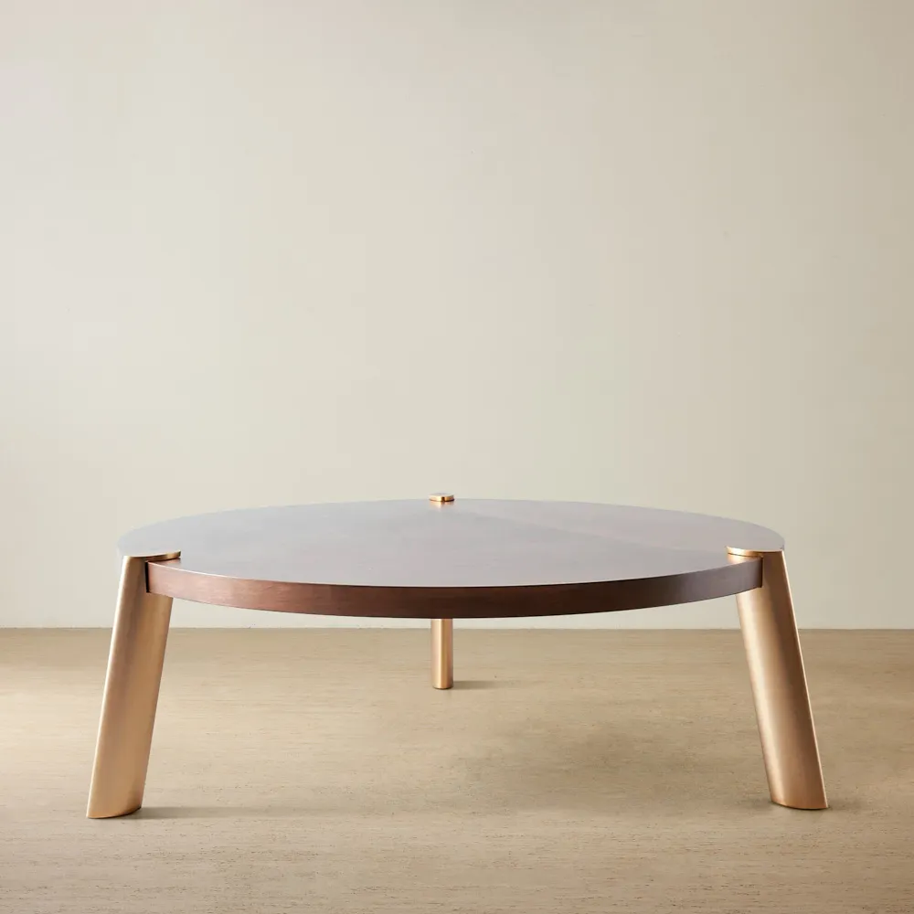 The Dale II Round Small Brown Coffee Table combines a brown and gold colourway with Art Deco-inspired design and modern craftsmanship. Its spacious tabletop is perfect for displaying books or decor, adding style to any living space.