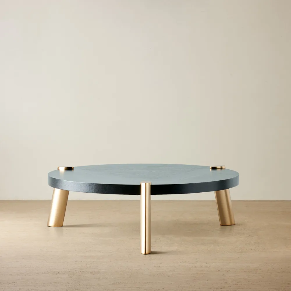 The Dale II Round Coffee Table offers ample space for hosting or everyday use, supported by sturdy metal legs in a golden hue. Its art-deco-inspired design and versatile colour palette make it a stylish addition to any decor theme.