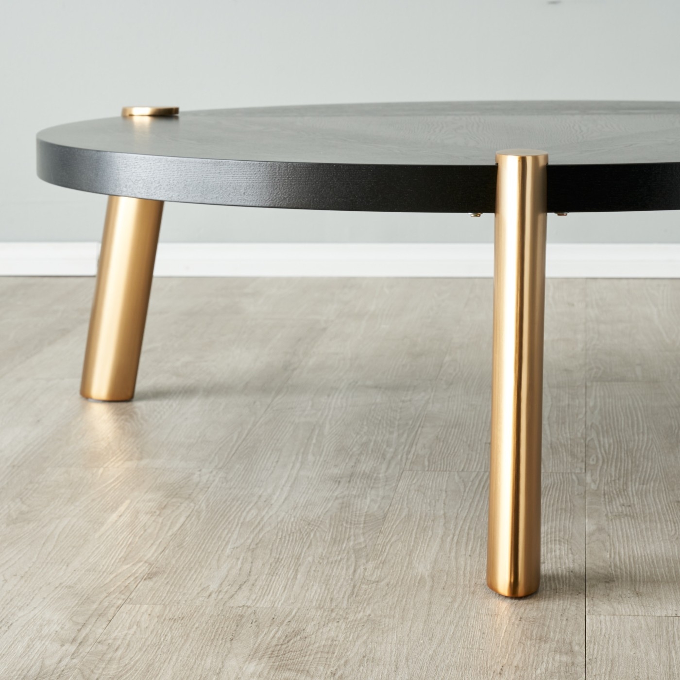 The Dale Round Coffee Table Espresso features a rich espresso and gold colourway with Art Deco-inspired design and modern craftsmanship. Its compact tabletop is ideal for displaying books or decor, adding elegance to any living space.