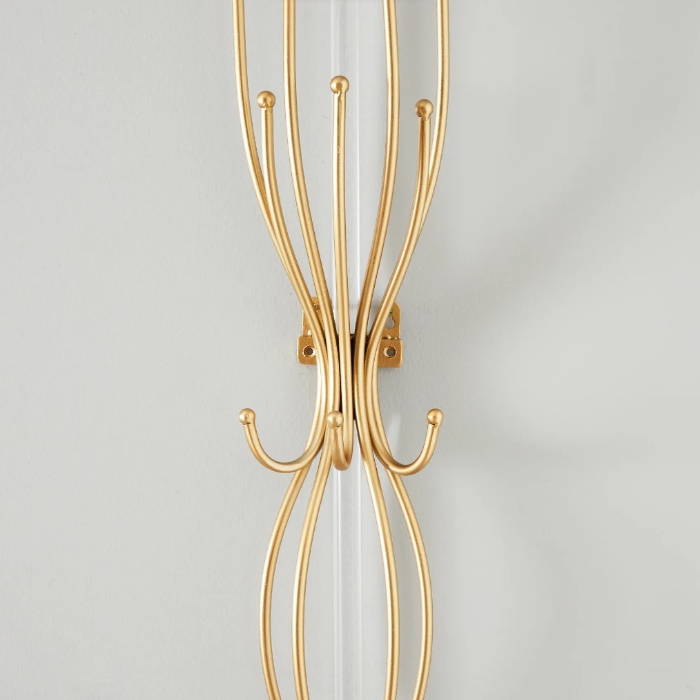 The elegant curves of the hooks are not only beautiful but are engineered to provide maximum support for your overgarments, ensuring they maintain their shape and structure. The golden hues of the coat hook emanate opulence, transforming a typically mundane item into a piece of art that will enhance your living room aesthetic.