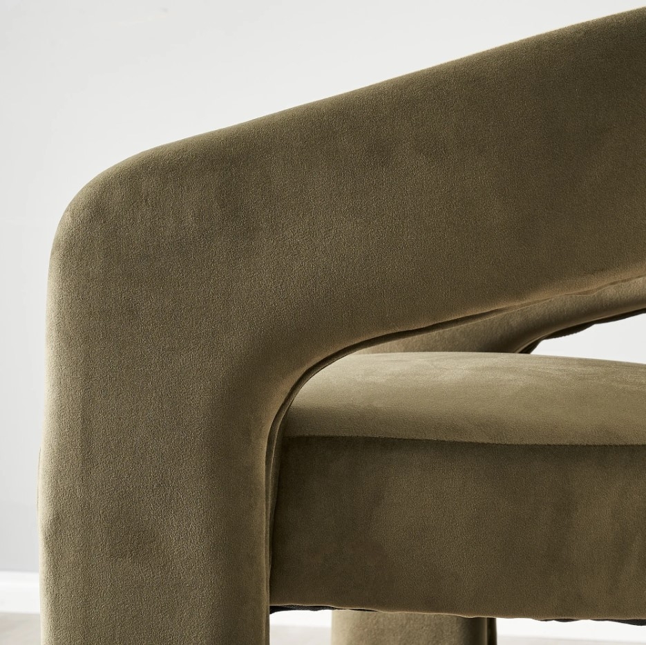 Introducing the Delaney Dining Chair, an epitome of modern sophistication wrapped in the luxurious embrace of velvet. This chair is designed to be more than just a seat at the table; it is a statement of style and comfort. The sleek, curved silhouette is a visual delight, expertly crafted to capture the eye and invite guests to sit and savor. Its sumptuous velvet upholstery, in a deep Olive Green coloured shade, is soft to the touch and lends an air of opulence to any dining setting.