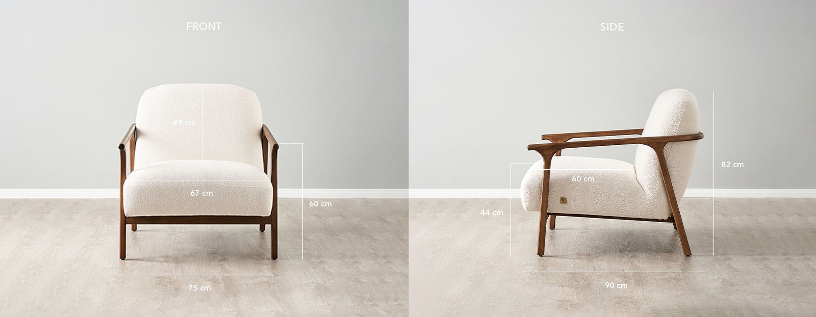 The Delphine balances simplicity and presence, with subtle details that highlight its sculpted wooden frame. Slender arms and a smooth finish give the chair both structure and timeless strength.