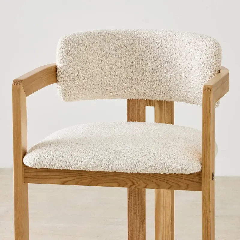 The Desmond is covered in Stone Cream fabric that offers a soft, supportive feel made for daily use. The stool’s curved back and cushioned seat create a comfortable shape that supports relaxed sitting.