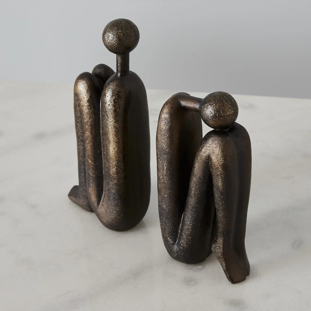 The unique look of the Desolation bookend makes it a stand-out piece, a conversation starter that will intrigue and captivate anyone who sees it. The sculptures' sitting positions evoke a sense of contemplation and solitude, adding a layer of meaning to the piece.